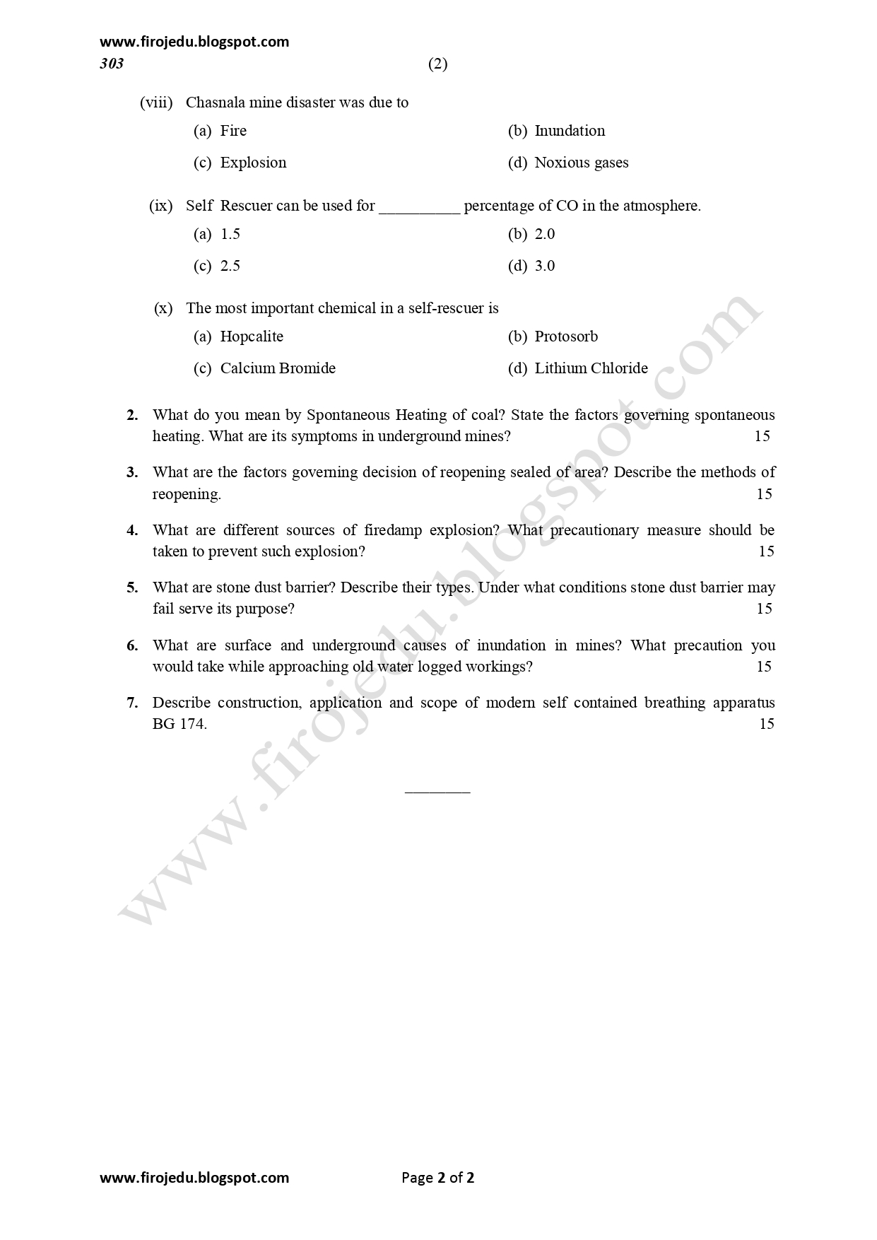 Mine Environment & Safety Engineering - 3rd Year Mining (2020_Exam - Question_Paper) {SBTE / JUT Jharkhand Board}